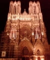 Notre-Dame de Reims is the Roman Catholic cathedral of Reims, where the kings of France were crowned. The three portals are laden with statues and statuettes, including the famous Smiling Angel. The inside of cathedral is 138.75 m (about 455 ft) long, 30 m (approx. 98 feet) wide in the nave, and 38 m (about 125 feet) high in the centre. It comprises a nave with aisles, transepts with aisles, a choir with double aisles, and an apse with ambulatory and radiating chapels. It has interesting stained glass ranging from the 13th to the 20th century. The rose window over the main portal and the gallery beneath are of rare magnificence. |